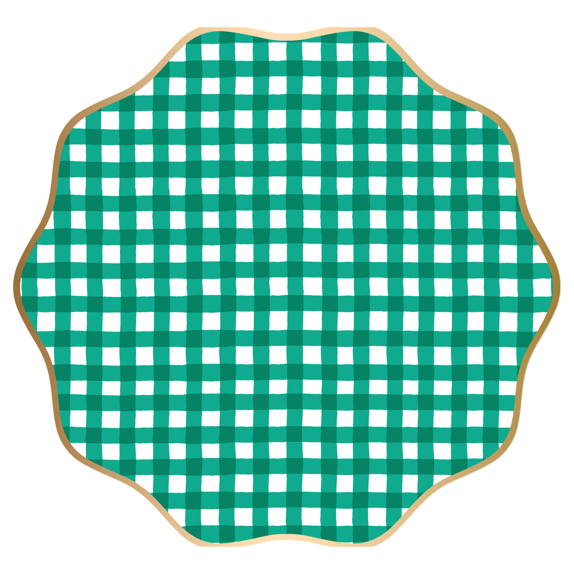 Elevate your party table with our Elegant Emerald Green Gingham Dinner Plates. With a foil rim and a rich green design, these plates are ideal for St. Patrick's Day, Father's Day, Christmas parties, and other special occasions.