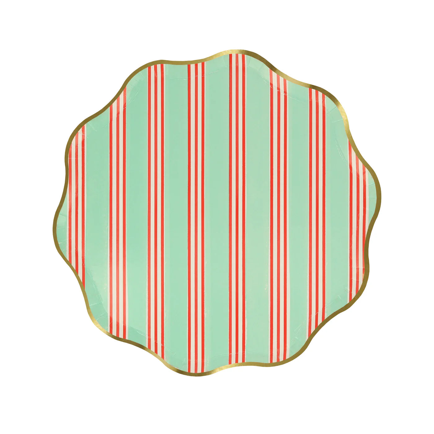 Bold stripes make a statement. Especially with our mix of traditional festive colors of red and green, with a modern pop of pink and blue and shiny gold foil, to keep things merry and bright. These fabulous paper side plates, with wavy borders, are ideal for Holiday table layering or for cocktail parties.