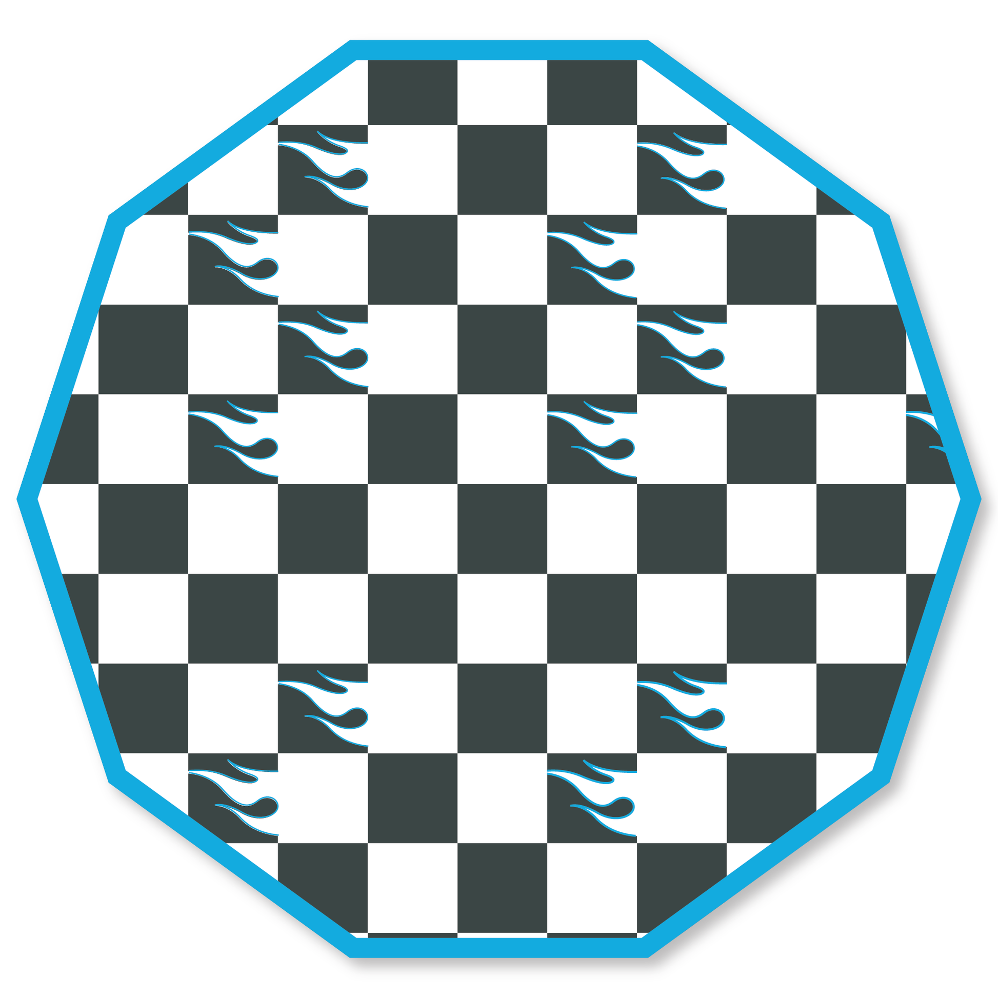 Fuel the fun with these bold black-and-white flame checker plates, featuring a vibrant blue rim. Perfect for race car-themed parties and high-energy celebrations!