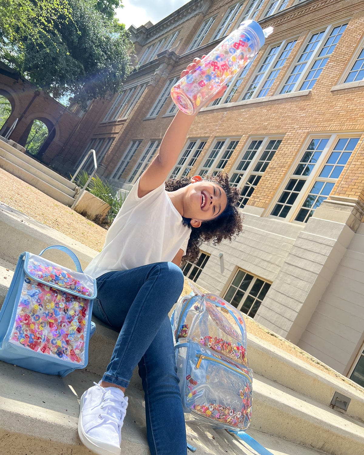 Let's lunch! Never miss an opportunity to pack a lunch thanks to this confetti-filled insulated lunch bag we designed. Easy to tote and designed to keep your eats cool too make this the ideal lunch buddy you've always dreamed of. Complete with gold-lined insulated interior and mesh side pocket for a water bottle!