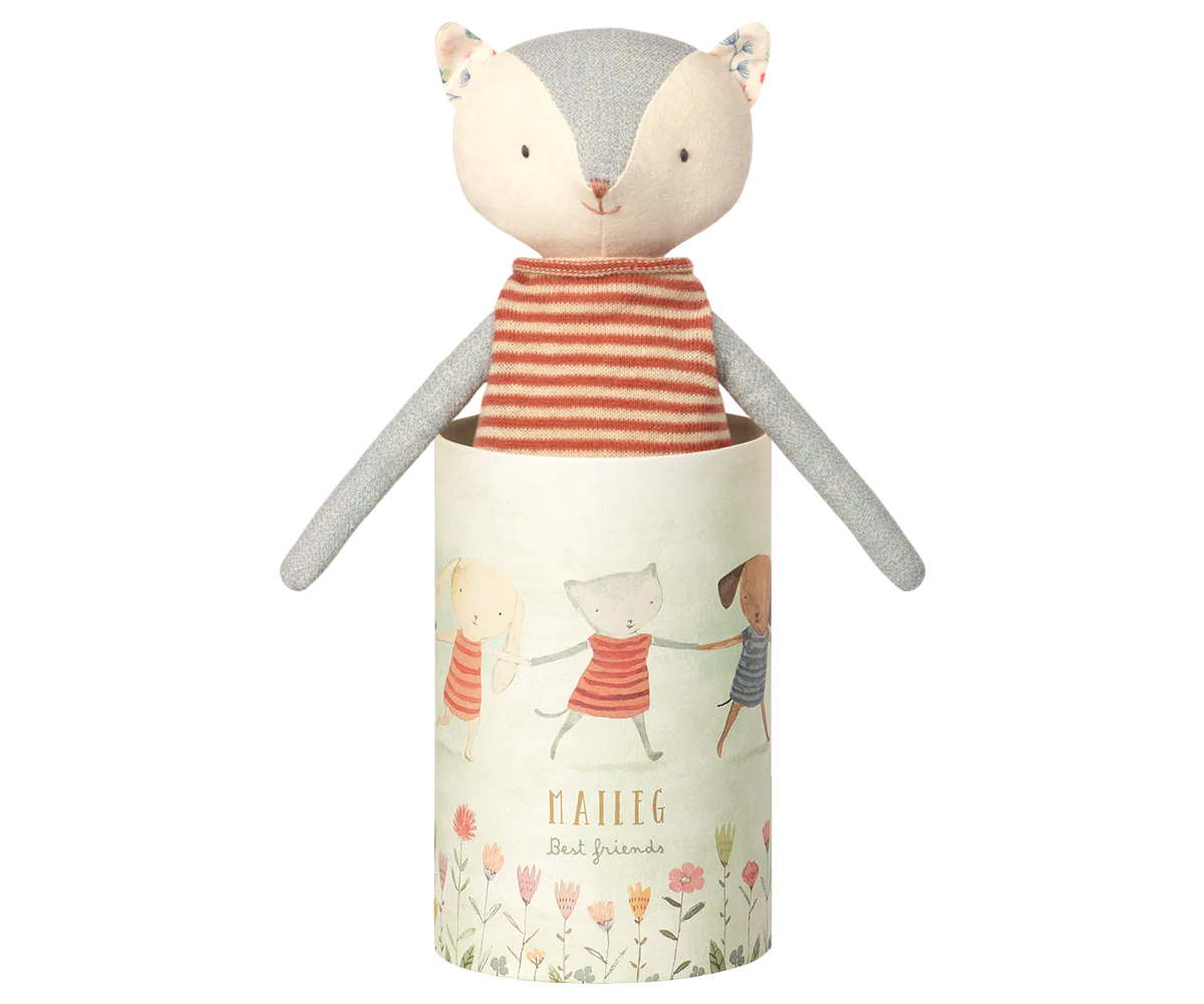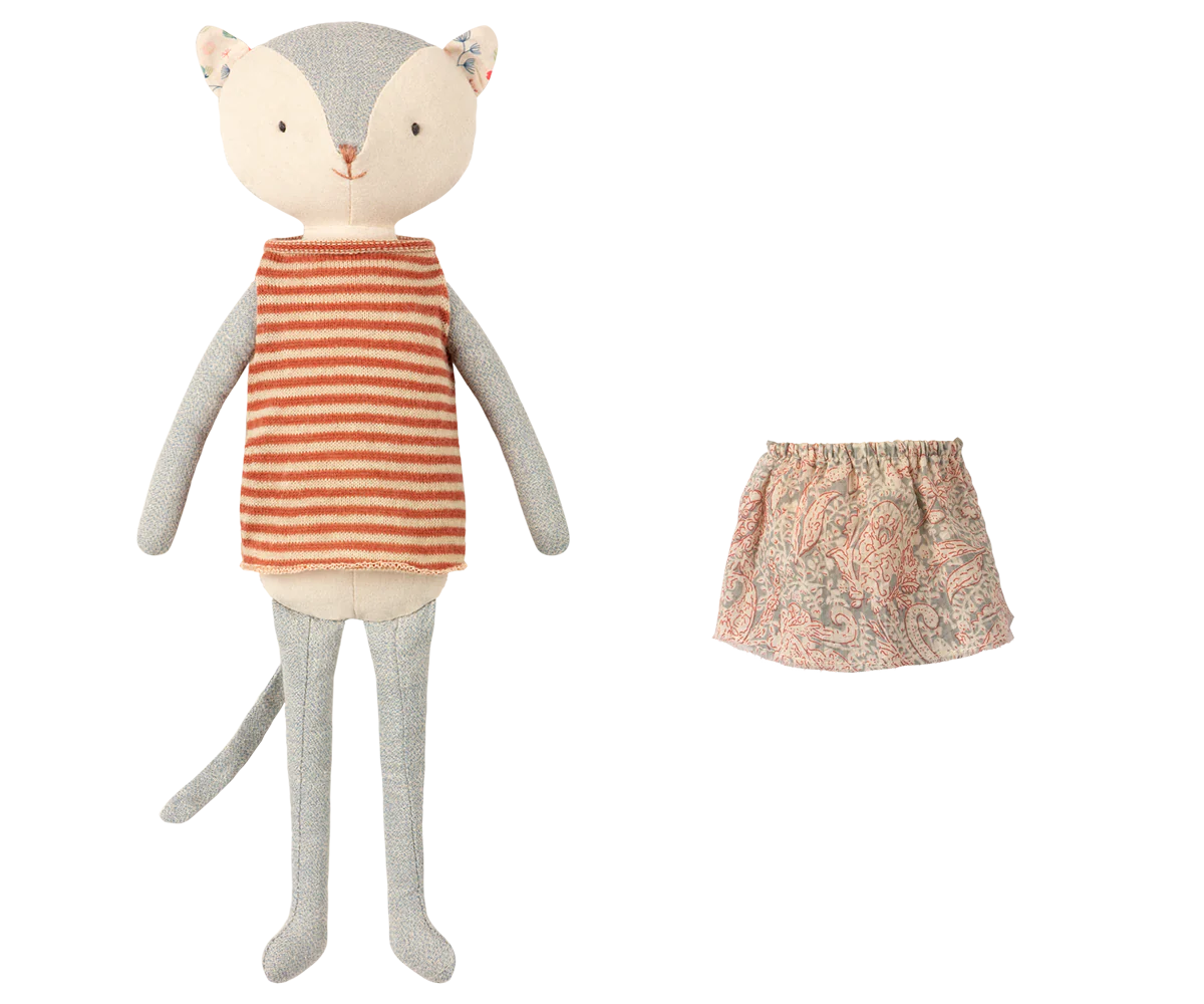 Best Friend Kitten is the "Purrfect" companion. You can find this friend playing Peek a Boo from inside the beautiful gift box. Kitty will arrive wearing a pomegranate stripe top, but you can expand the wardrobe with extra Best Friend Clothing.