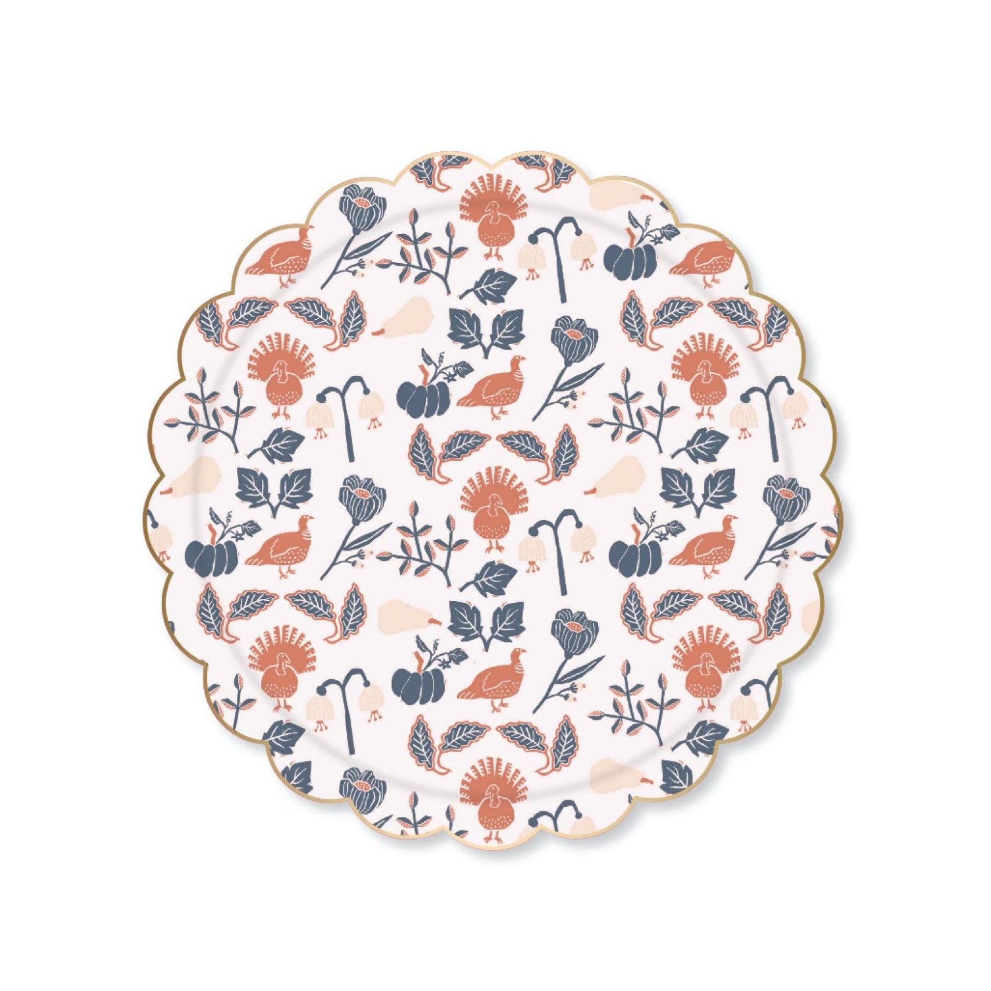 Bonjour Fete X The House That Lars Built plates feature turkeys, gourds, and florals designed by talented creator Brittany Jepsen.