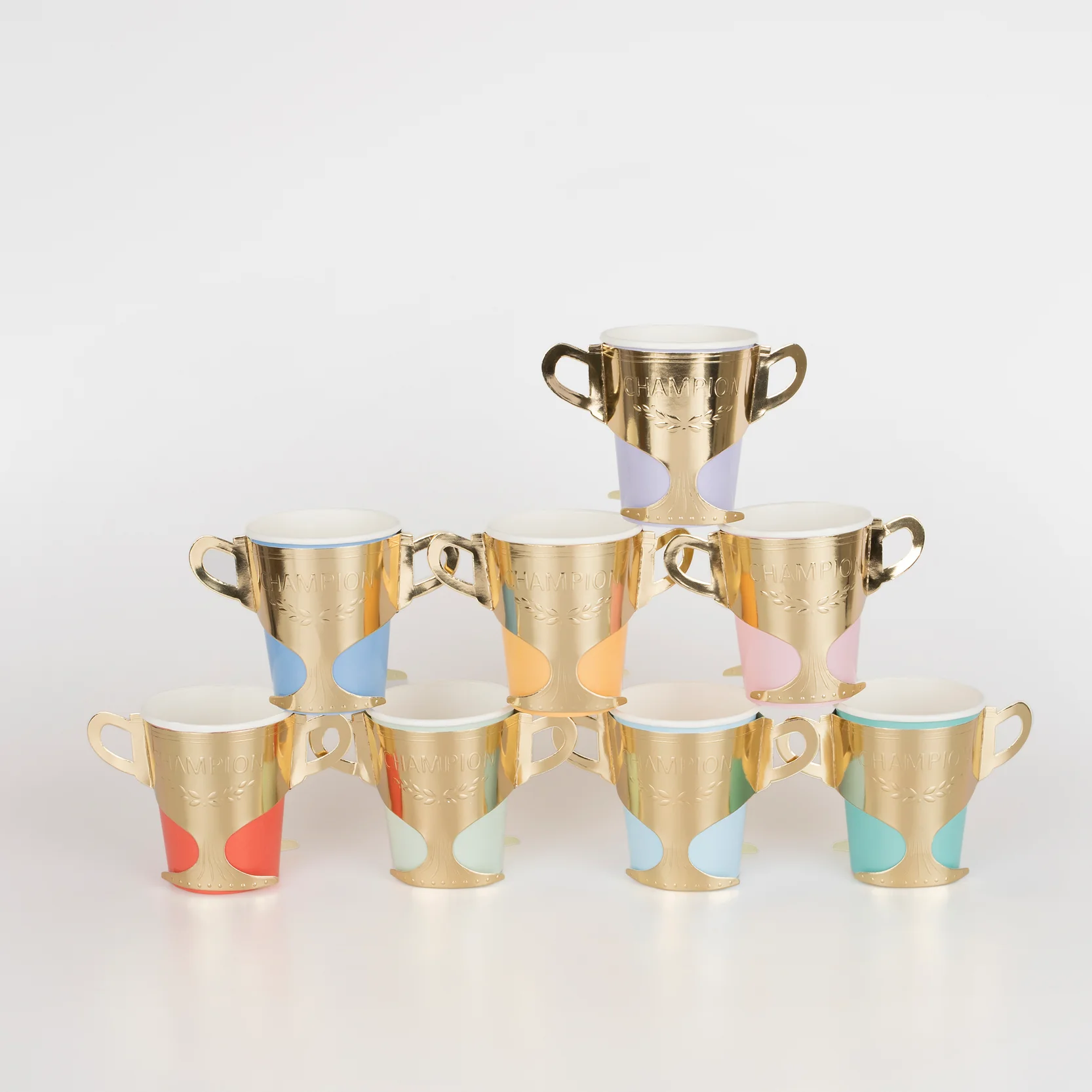 Make all your guests feel like a champion with these amazing cups with shiny gold foil details. They're perfect to fill with drinks, snacks or party favors. They're perfect for horse parties, or if you're holding a party to watch horse racing or dressage.