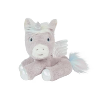 - Iridescent accent on the hooves and wings, velvet inner ears, and a plush rainbow tail and mane