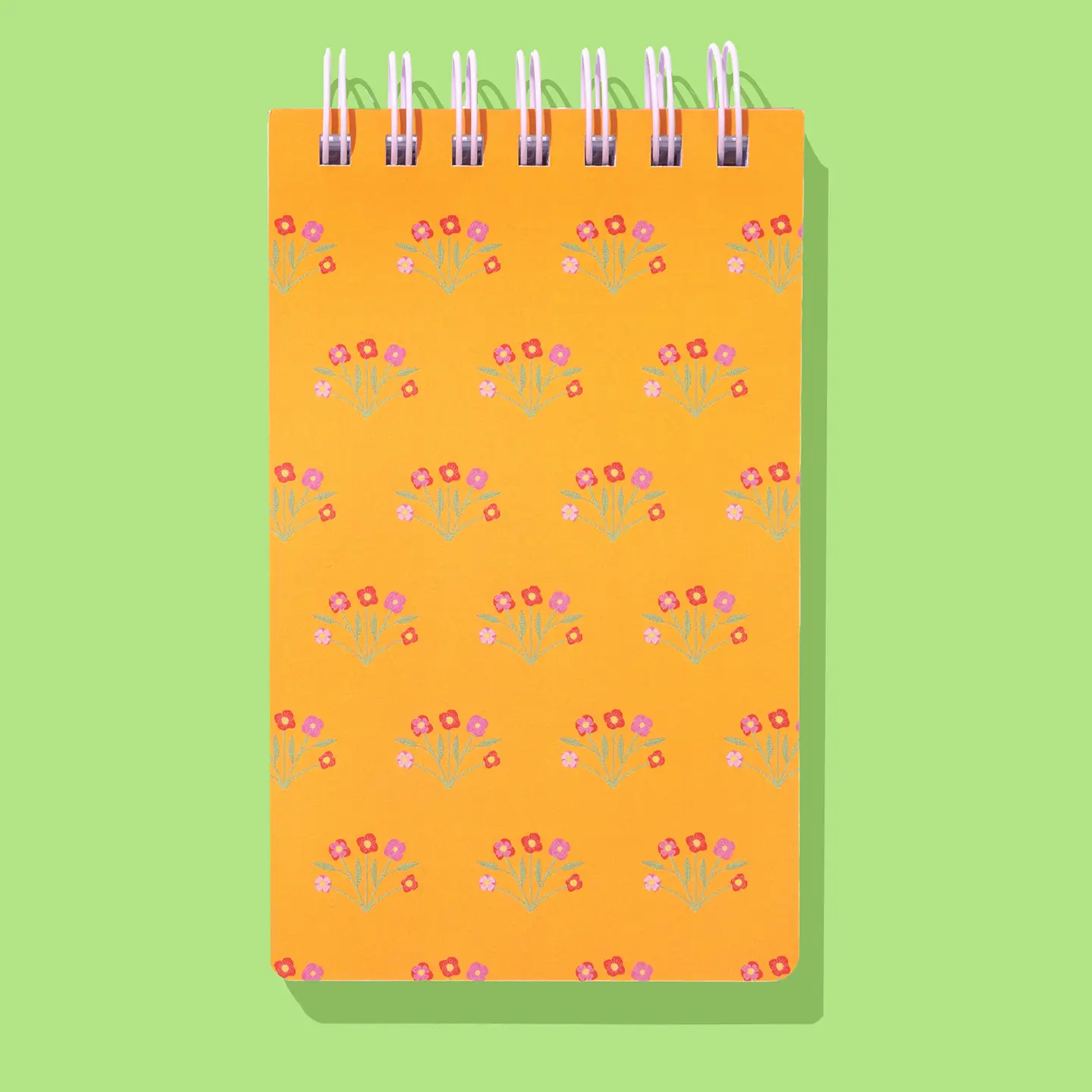 Small Spiral Top Notebook - Orange w/ Flower Bouquets