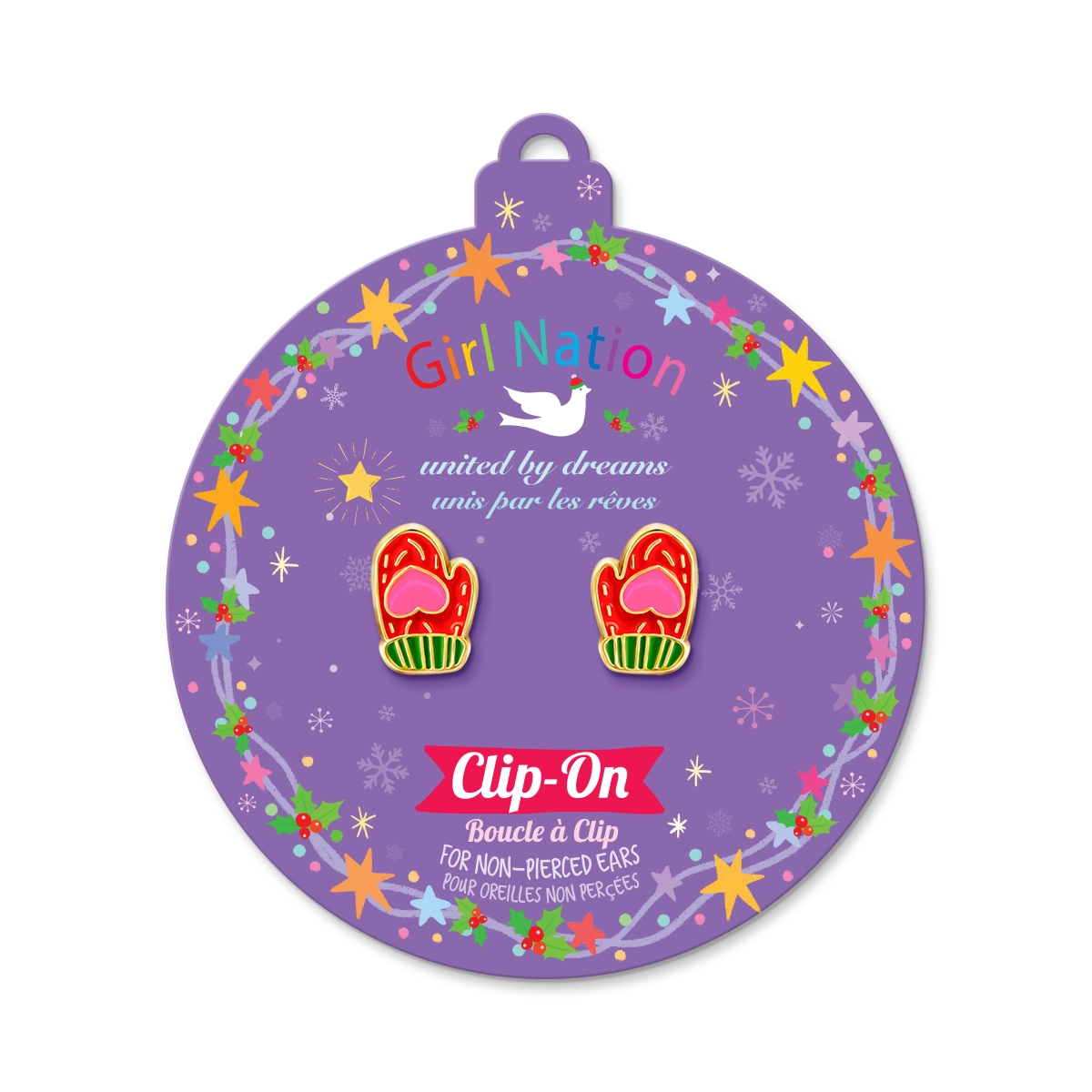 Bring all the joy and holiday spirit to life with our Limited Edition Sweetheart Mittens Earrings. These earrings are the perfect accessory to spread holiday cheer and add a touch of festive magic to any outfit. Earrings are packaged on adorable ornament cards. The perfect stocking stuffer gift idea! Calling all cuties who don’t have pierced ears! • No pain, no pinch! Clip-Ons are made out of a soft, non-slip silicone, so they are gentle on little ears. • Transparent clip- you can’t even tell she’s wearing clip-ons! • Clip-ons are flexible and can be gently stretched for optimal comfort Give her grown-up quality while appealing to all of her childhood whimsies. Funky, fantastic and fun, these earrings are the perfect mix of style, quality and sweet expressions. Materials • Clip On: Flexible, Transparent Silicone • Earring Embellishment: Zinc and Enamel • Hypoallergenic & Non-toxic • Nickel, Lead and Cadmium Free *Not intended for children under 5.